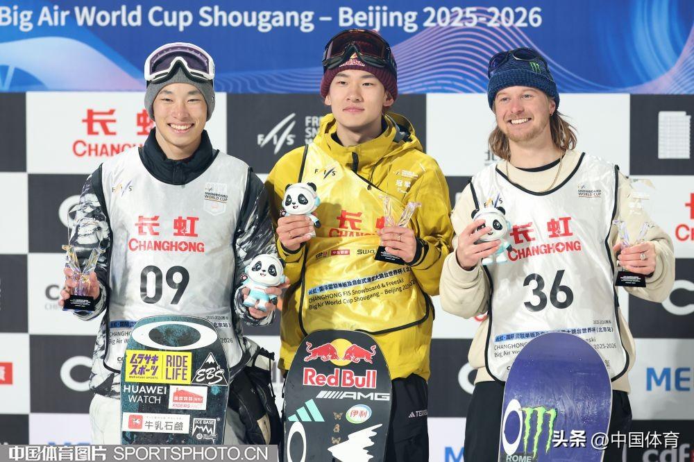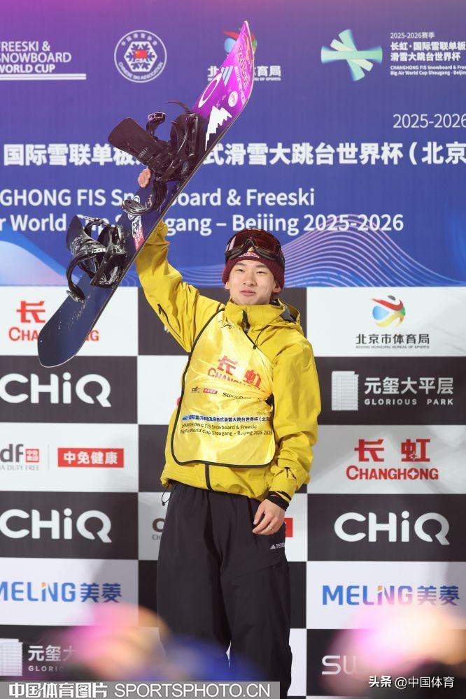中國體育訊 12月6日,2025-2026賽季國際雪聯單板及自由式滑雪大跳臺世界盃北京站展開最後一個比賽日的爭奪。男子單板決賽中,中國選手蘇翊鳴三跳完美髮揮,以181.00分奪得冠軍。這也是他繼上週世界盃崇禮雲頂站後,再度摘得該項目桂冠。另兩位中國選手葛春雨和趙英旭位列第八位和第九位。(中國體育圖片 安靈均 攝)