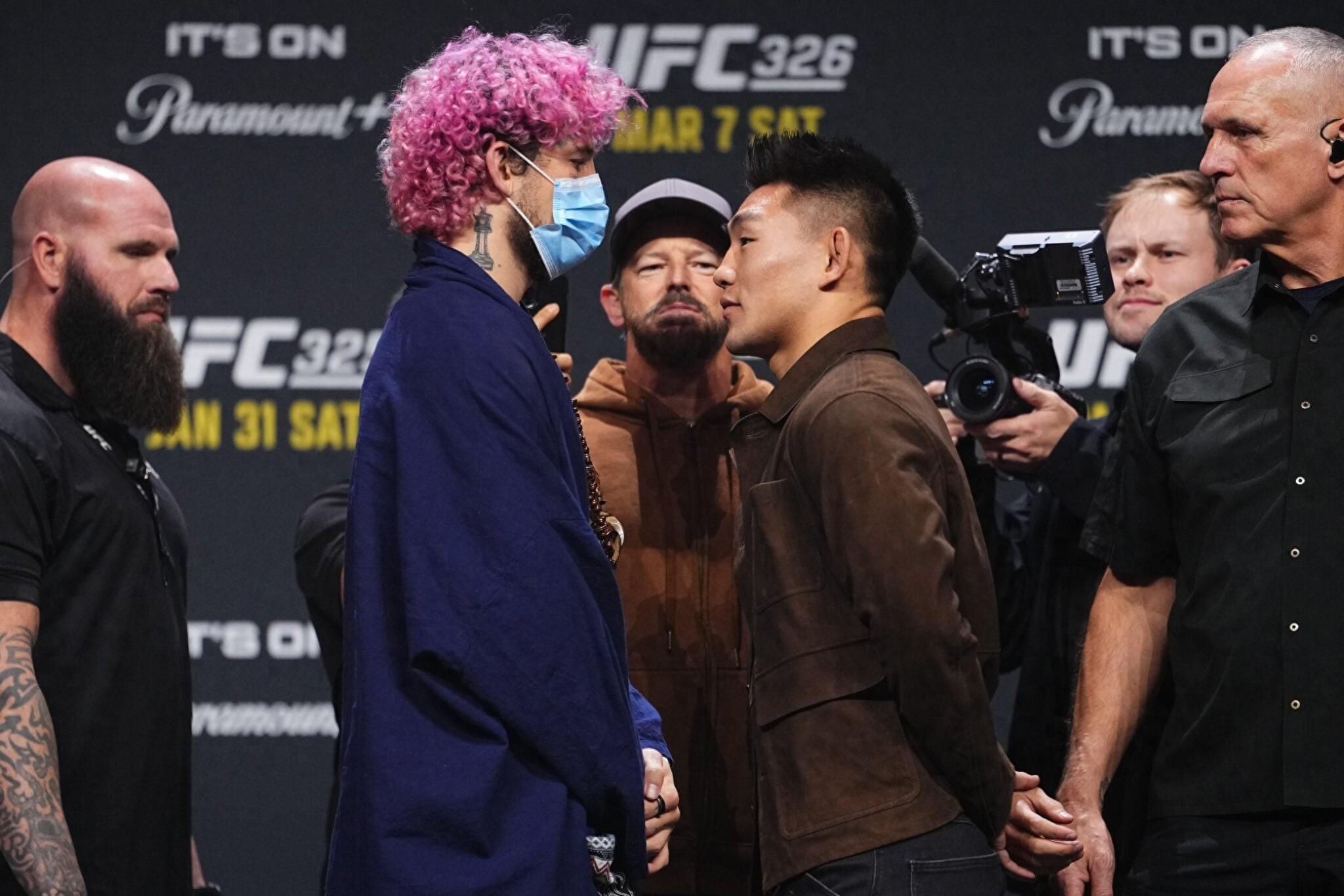 宋亞東參加UFC 324賽前對視,對手奧馬利佩戴口罩引爭議