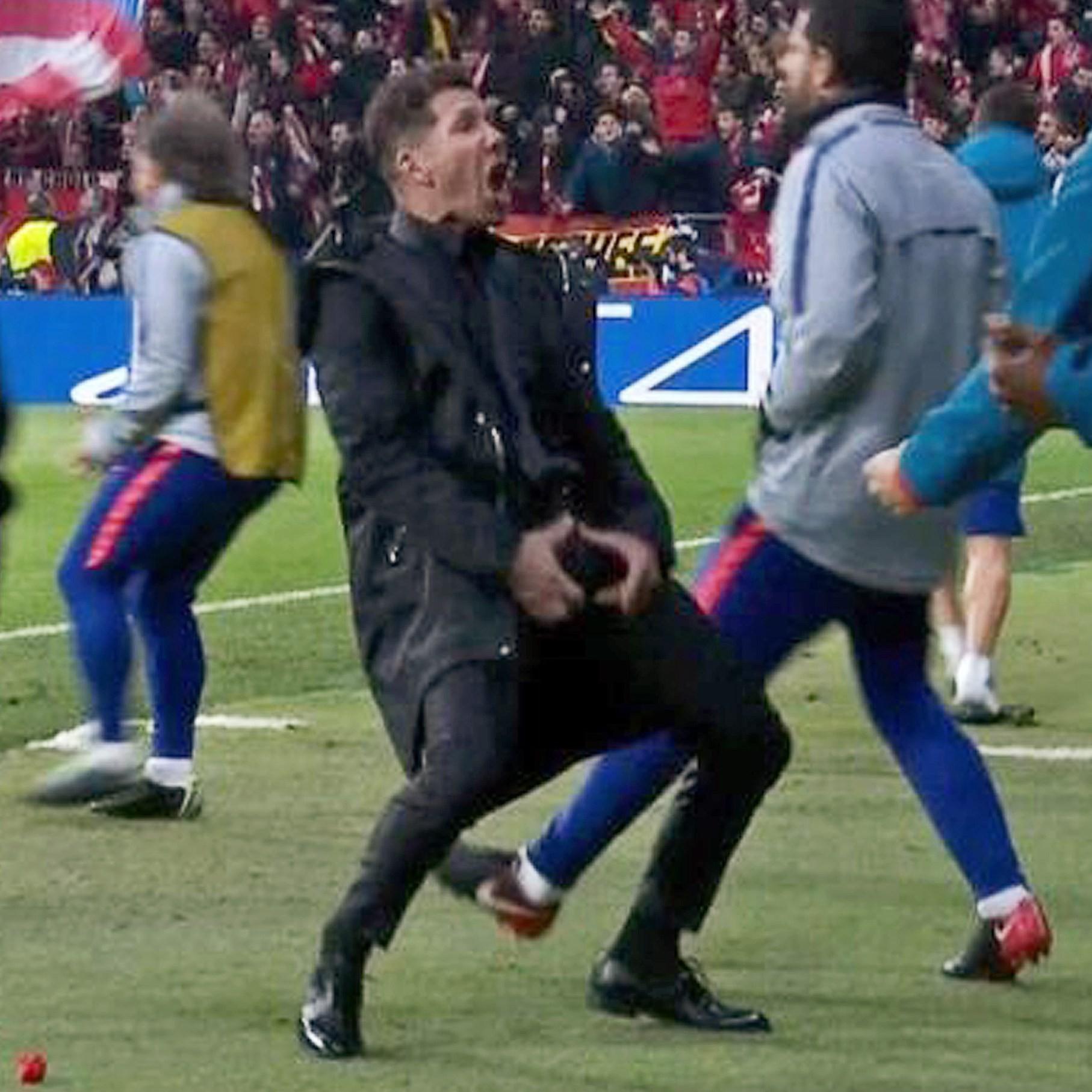 要我說,足球本就是一項充滿荷爾蒙氣息的運動,當球員和教練員心率飆升,做出這樣的動作可並非孤例。2019年歐冠賽場,西蒙尼在對陣尤文的歐冠首回合裏霸氣慶祝,完全是匪帥的真情流露。
