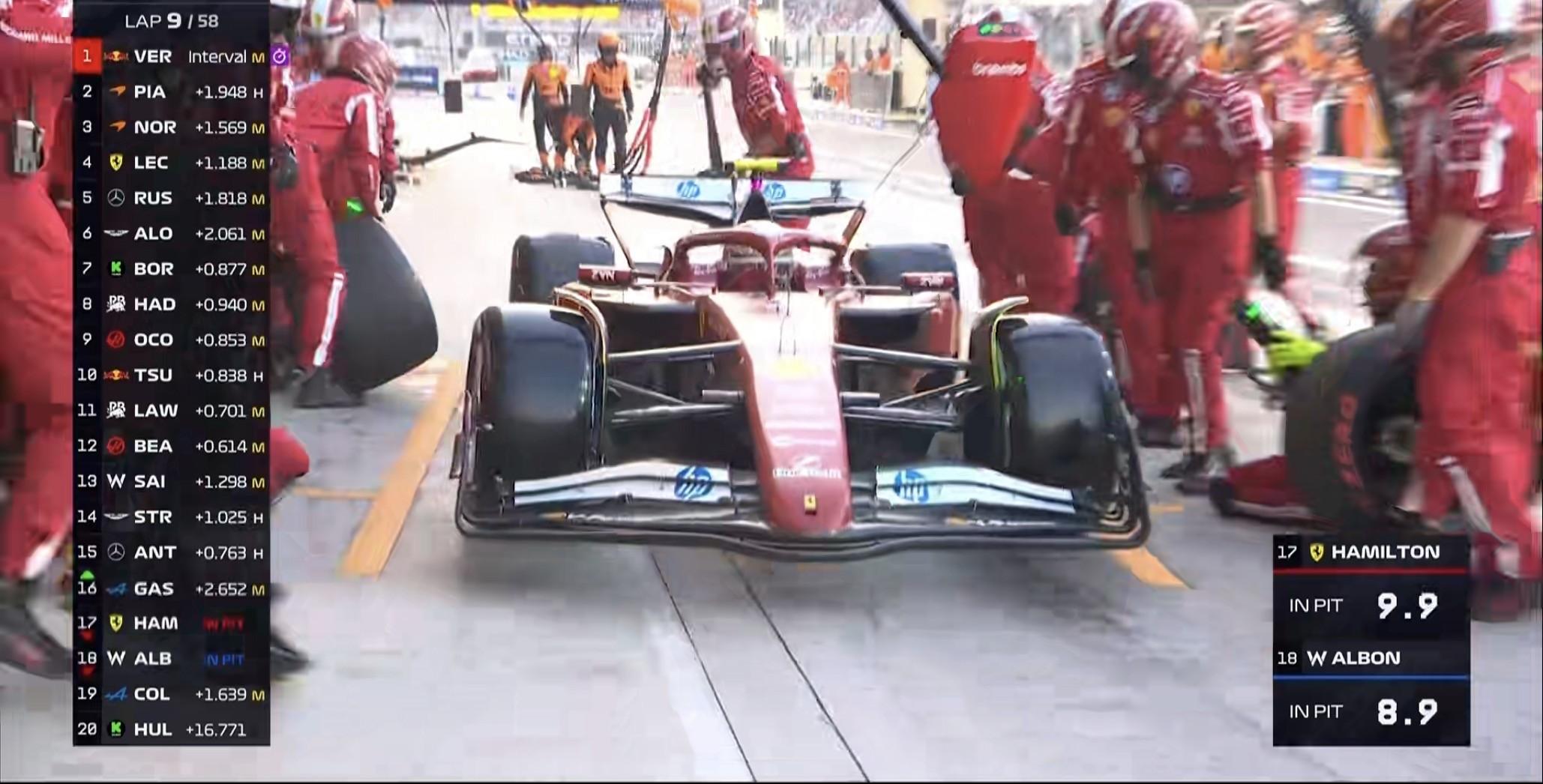 第9圈:漢密爾頓、阿爾本軟胎進站一停,出站後落到第18&第20;