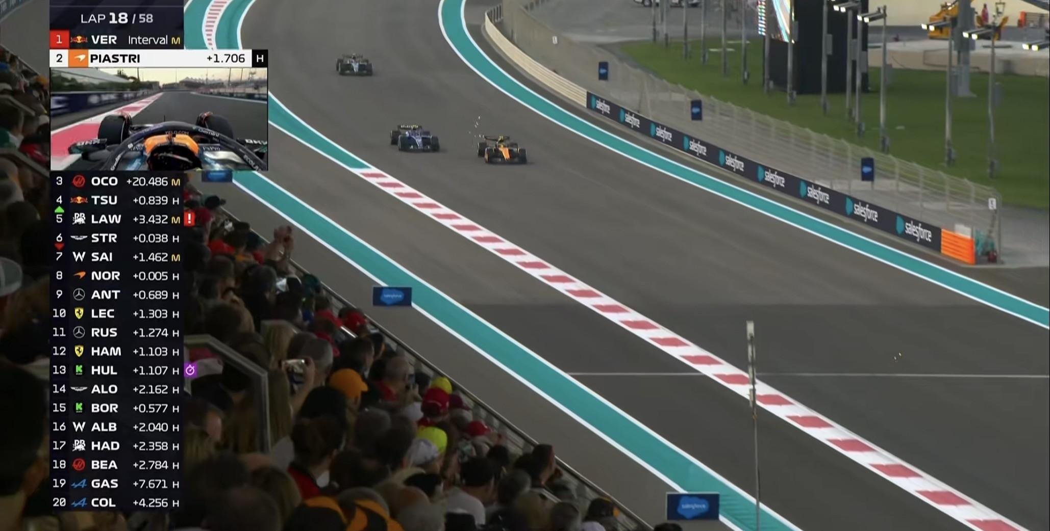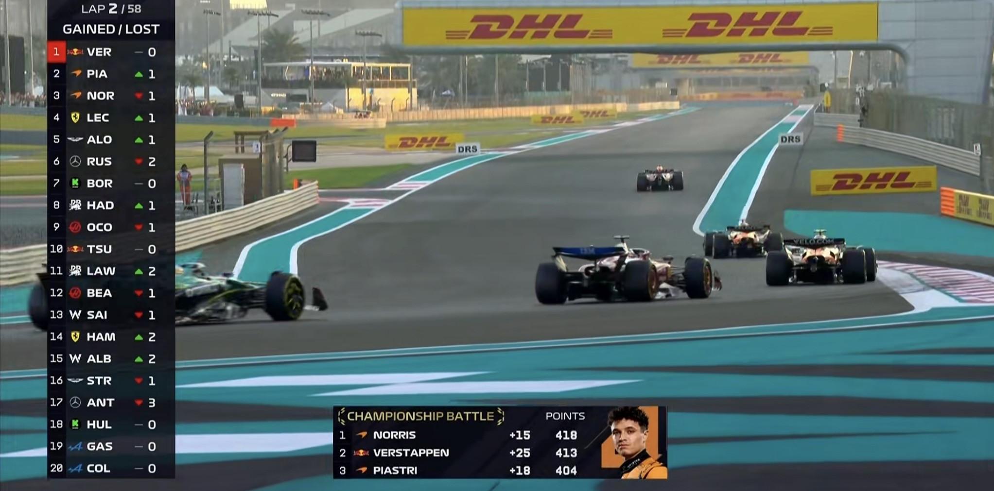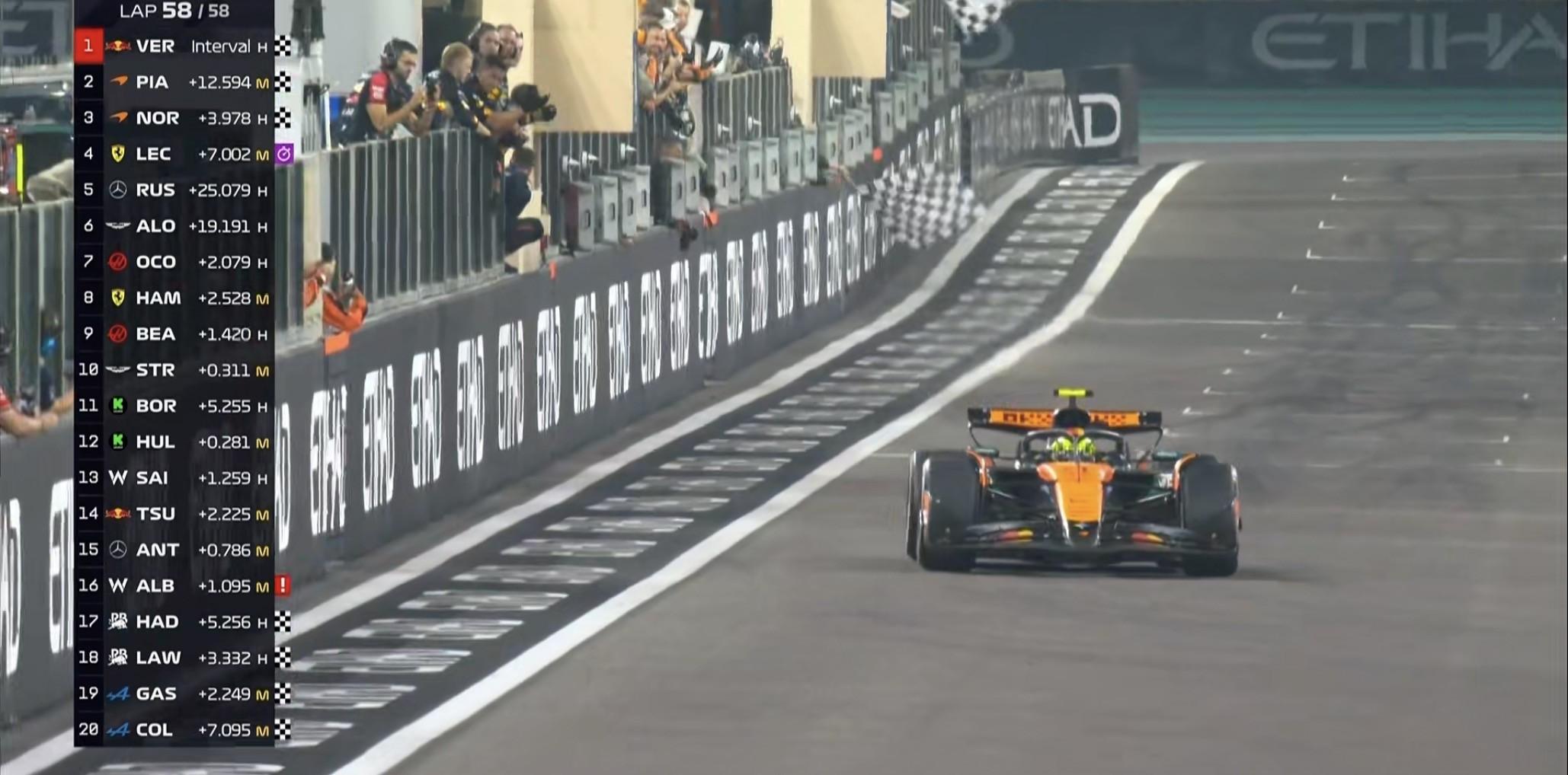 F1阿布扎比站正賽:諾里斯加冕車手總冠軍,維斯塔潘2分惜敗