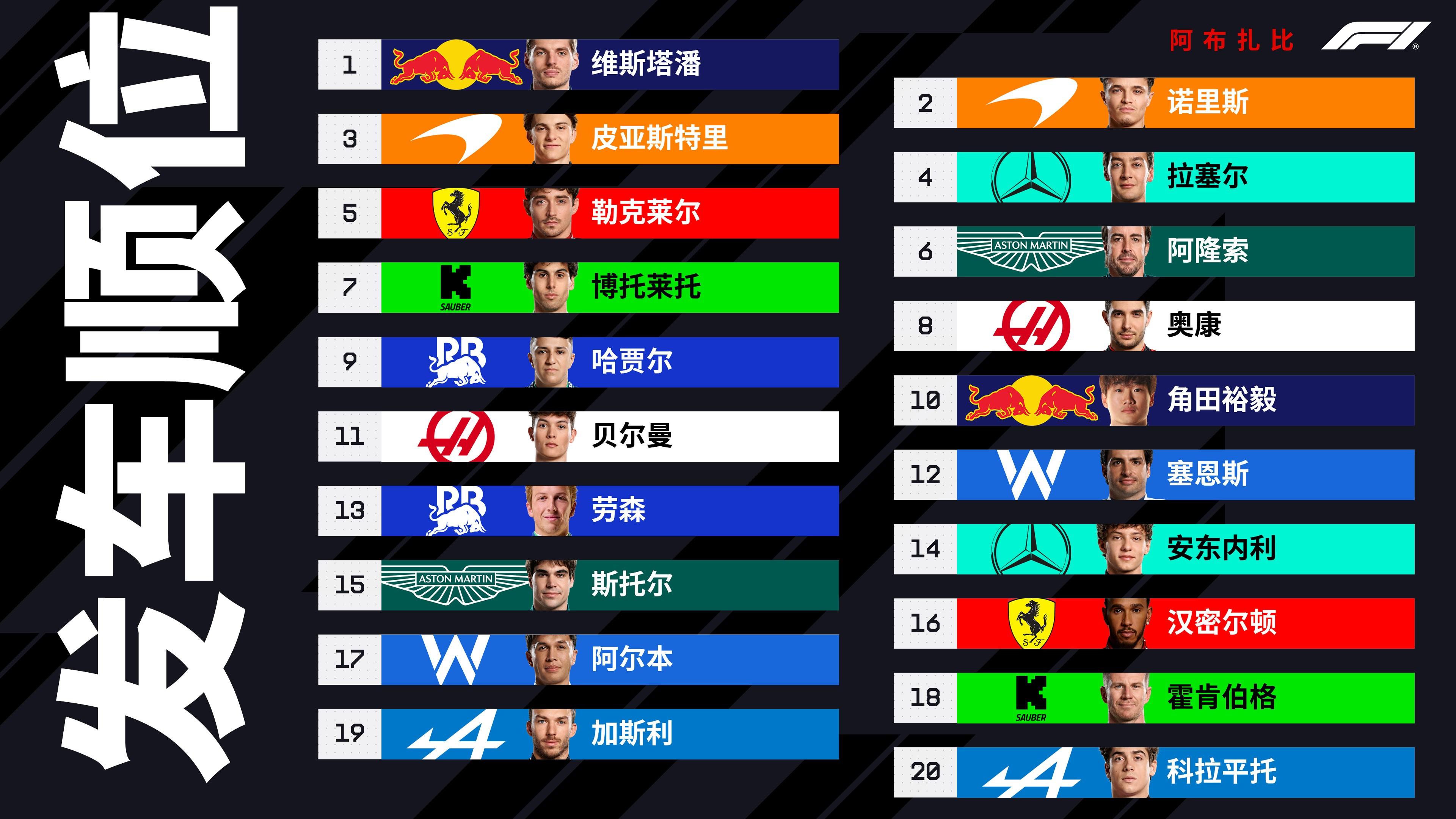 第1-第5:維斯塔潘、皮亞斯特里、諾里斯、勒克萊爾、拉塞爾