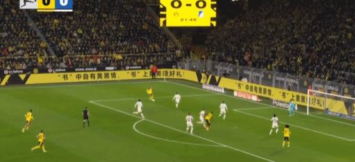 第43分鐘,打破僵局,揚-科託助攻布蘭特破門,多特1-0霍芬海姆