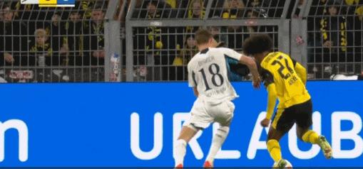 第18分鐘,裁判判給霍芬海姆門球,多特球員表示不滿