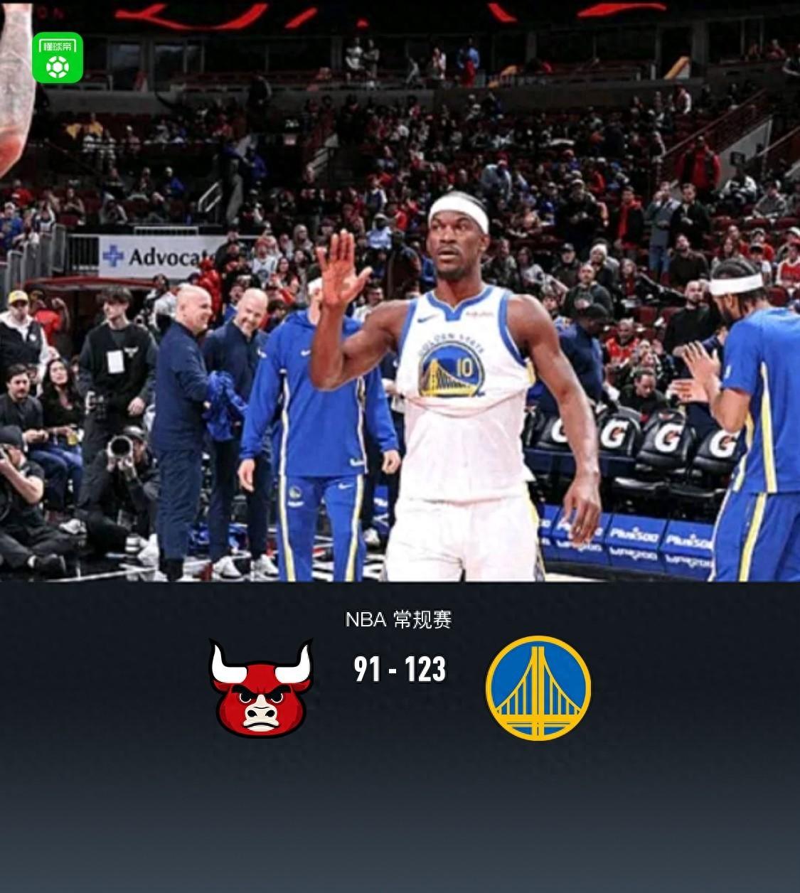 北京時間12月8日NBA 常規賽,勇士背靠背客場挑戰公牛。本場勇士巴特勒復出,開場勇士迅速建立兩位數領先,半場勇士60-46公牛,第三節勇士率先將分差拉大至24分,隨後公牛反撲三節結束追至11分,末節前半段勇士三分雨轟出一波24-5領先30分徹底收下比賽,最終勇士123-91大勝公牛,公牛遭遇7連敗。