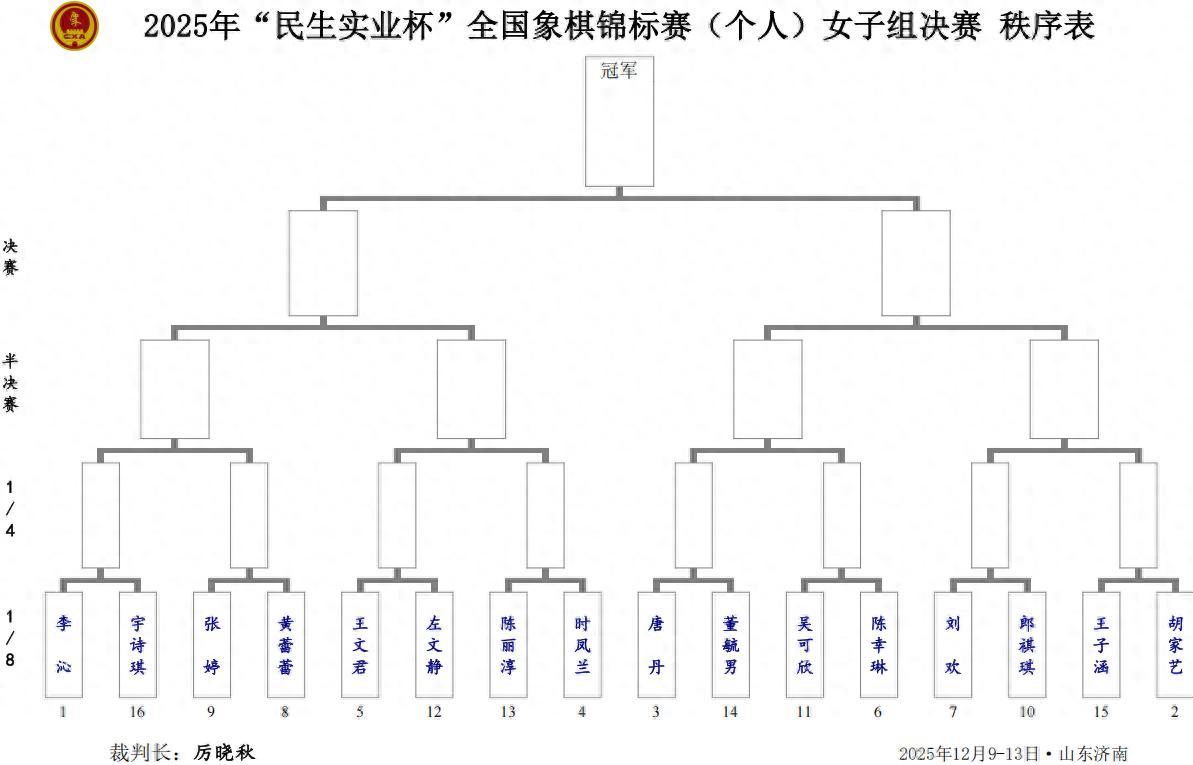 2025年全國象棋個人賽的大戰,在山東濟南鋼城,結束小組賽階段的全部爭鬥,三十二個男子小組,十六個女子小組的晉級名單,全線產生。