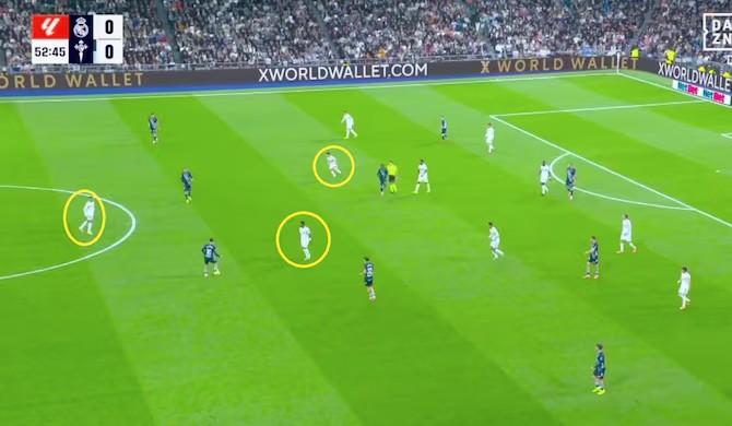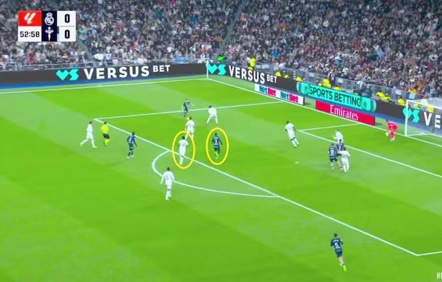 一切始於塞爾塔的一連串傳球,姆巴佩與維尼修斯放棄了防守責任,退出了這次防守。他們甚至沒有封鎖傳球線路,讓塞爾塔得以自由組織。兩人態度的鬆散也波及到居萊爾,使其無所適從。