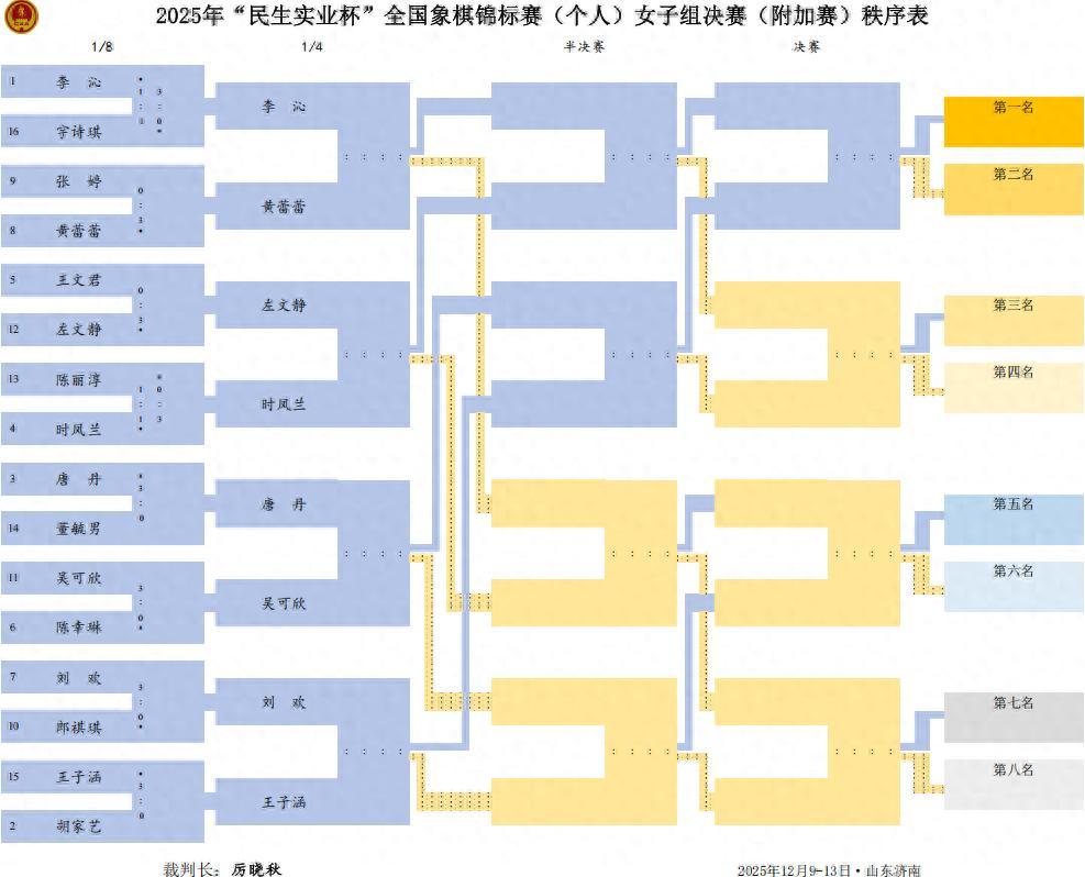 下半區的另一個1/4分區中,衛冕冠軍劉歡特大慢棋擊敗郎祺琪,王子涵取勝胡家藝。