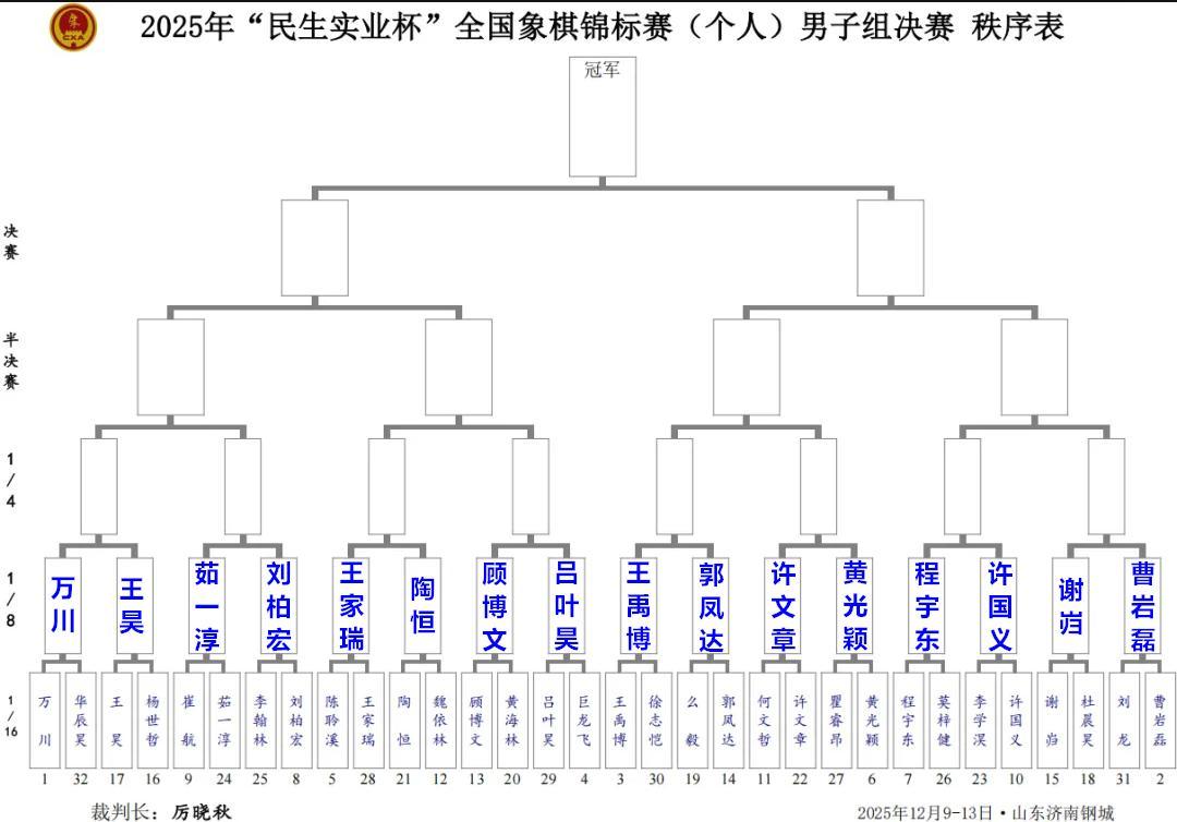 2025年全國象棋個人賽淘汰賽的大斗,在山東濟南鋼城,進行首輪淘汰戰廝殺的火線拼奪,男子十六強,女子八強全線殺出,大戰驚心動魄,險象環生,血鬥連連,烽火連天。