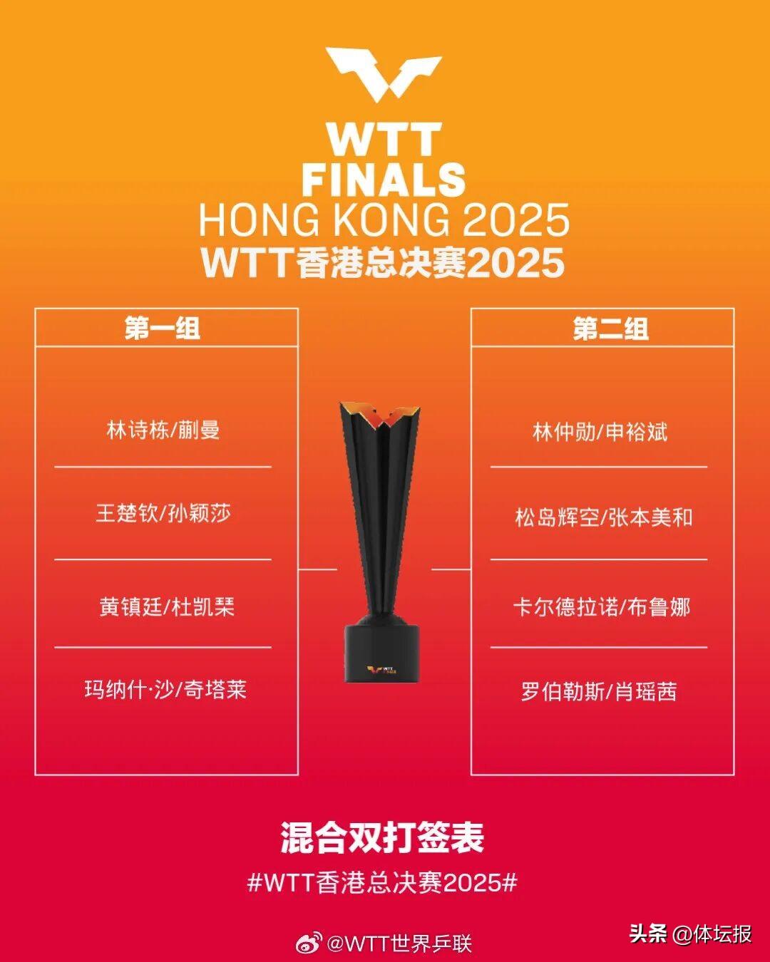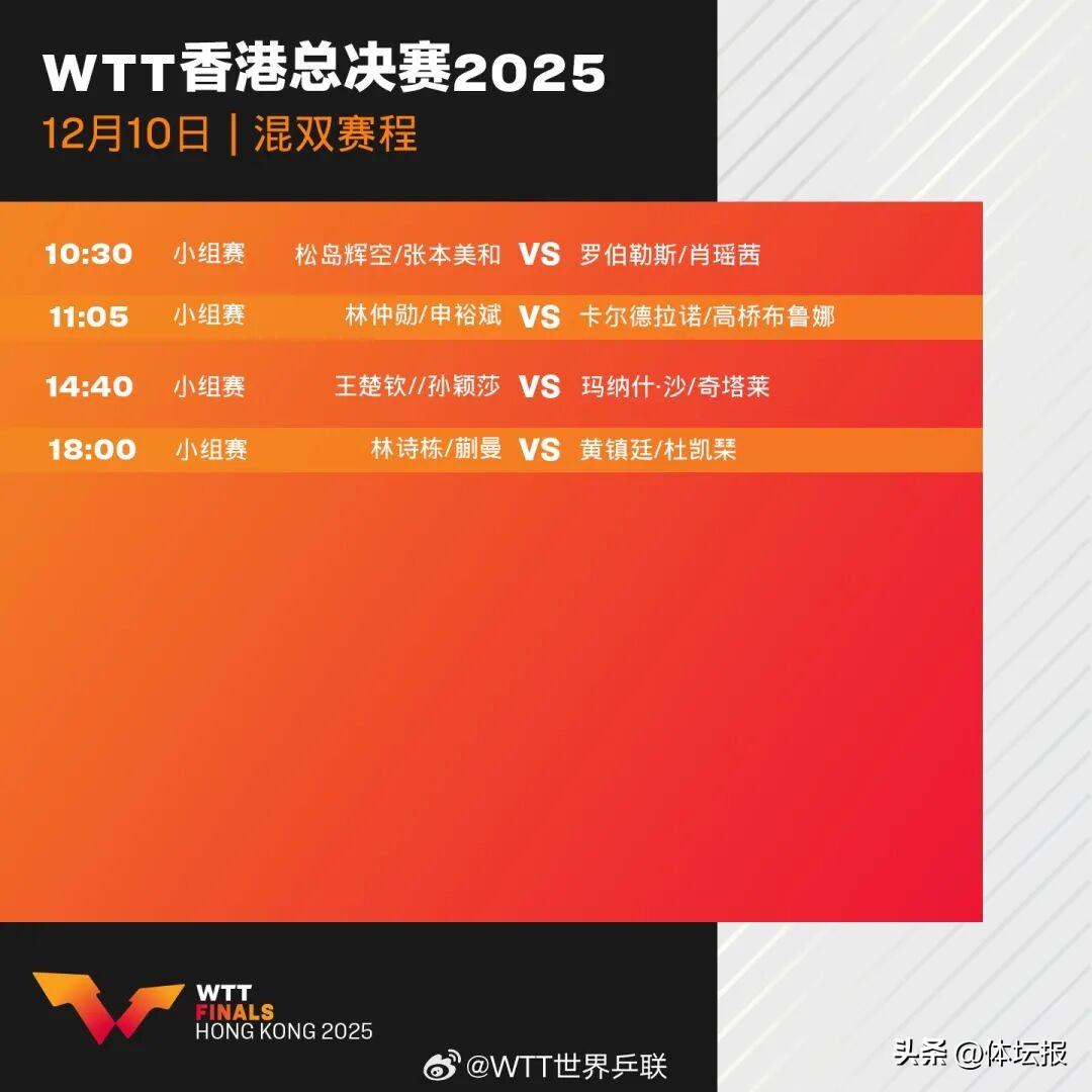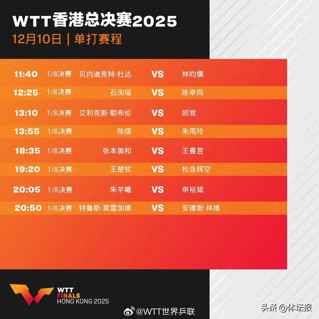 12月10日,2025年WTT香港總決賽拉開戰幕!這是今年最後一項乒乓球重大賽事,將於12月10日-14日在中國香港紅磡體育館舉行,12月13日決出混雙冠軍,12月14日決出男單、女單冠軍。