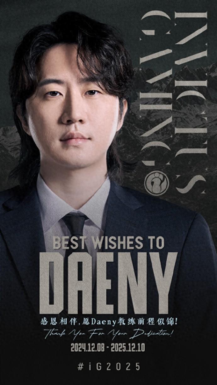 在共同征戰的歲月裏,我們一同在挑戰中不斷尋求突破,在此由衷感謝Daeny教練爲iG付出的心血與努力,你每一次激烈卻坦誠的細緻覆盤、後臺督戰時豐富的面部表情與肢體語言、比賽結束後飛奔着迎接隊員們的身影,都串聯起25極故事的脈絡。即便揮手作別,彼此在追尋共同目標途中結下的深厚情誼也不會改變。