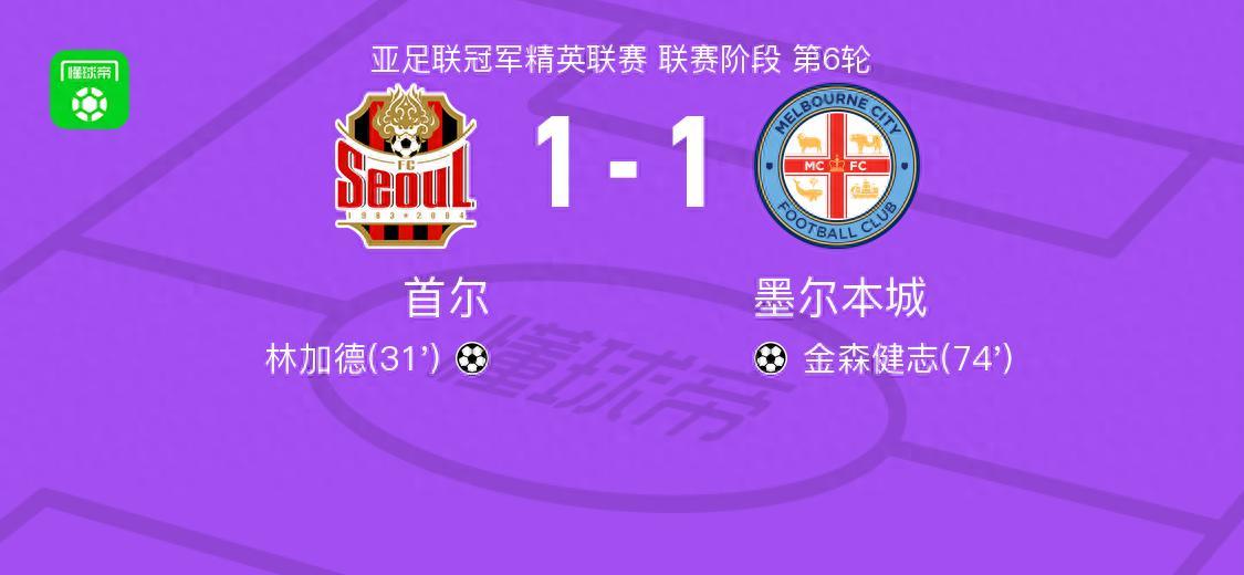首爾FC1-1墨爾本城,林加德破門,金森健志扳平比分