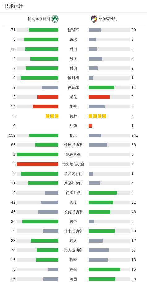 帕納辛奈科斯0-0比爾森勝利,耶梅爾卡染紅