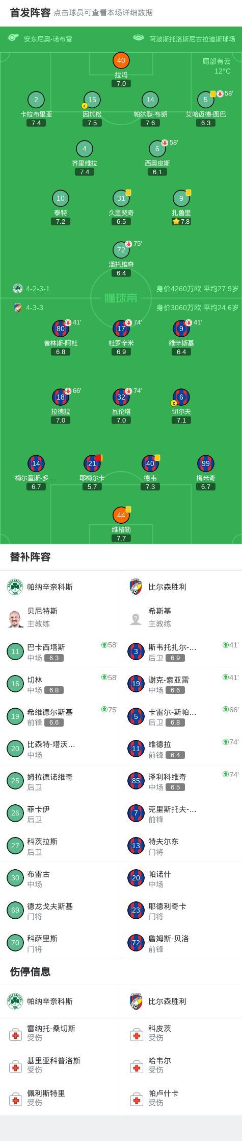 北京時間12月12日歐足聯歐洲聯賽 聯賽階段 第6輪,帕納辛奈科斯對陣比爾森勝利。最終比分帕納辛奈科斯 0