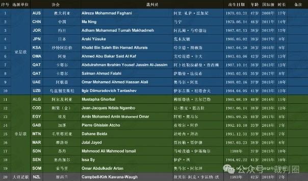 本期培訓名單來自亞洲足聯、非洲足聯和大洋洲足聯,有19個協會共20名裁判員參加,其中包括亞足聯9個協會的10名裁判員、非足聯9個協會的9名裁判員、大洋足聯1個協會的1名裁判員。