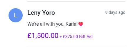 據報道,約羅向一位正在與第四期腹膜癌抗爭的女性捐贈了1500英鎊(約合人民幣1.42萬元),他還留言道“我們都支持你,卡拉!❤️”。