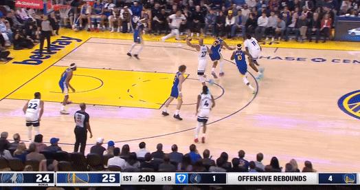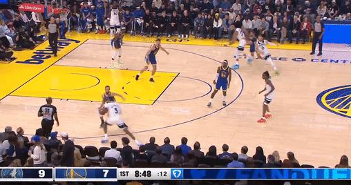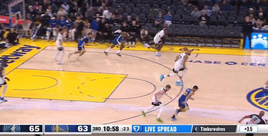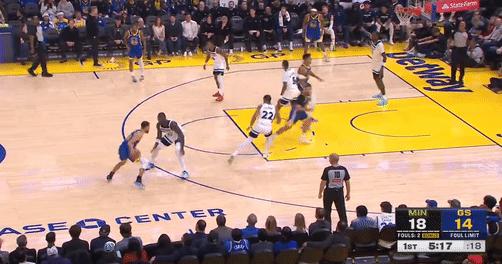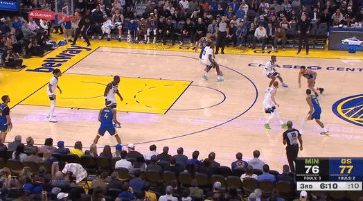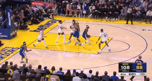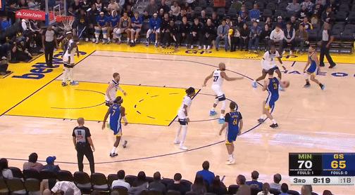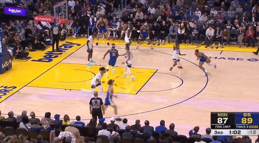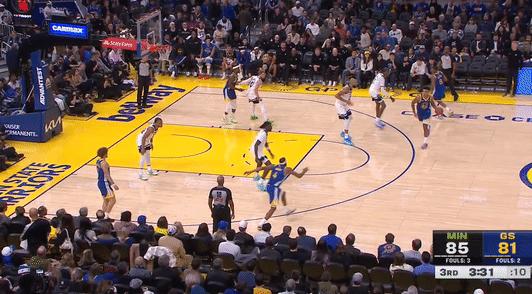 第三節,上來勇士連續失誤,森林狼反擊迅速一波6-0反超4分,隨後勇士庫裏站出來連突帶投止血,緊跟斯賓塞、巴特勒相繼得分反超3分,隨後森林狼戈貝爾、蘭德爾強攻內線得分,勇士庫裏回應,但緊跟蘭德爾、迪文琴佐相繼三分領先6分,隨後森林狼進攻斷電,勇士穆雷站出來連得4分,緊跟波斯特、巴特勒相繼得分,一波10-0再度反超4分,三節結束,勇士91-88森林狼。