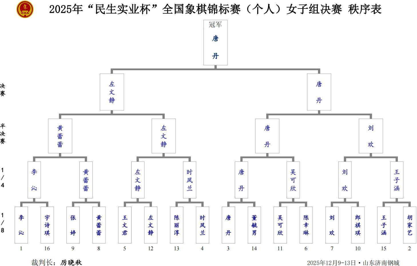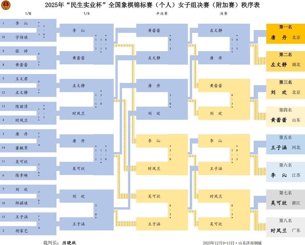 女子冠亞軍決賽的大戰,在女子象棋歷史第一人,九冠王、超級丹,北京隊唐丹與被稱爲左盟主的湖北隊左文靜之間強力上演。