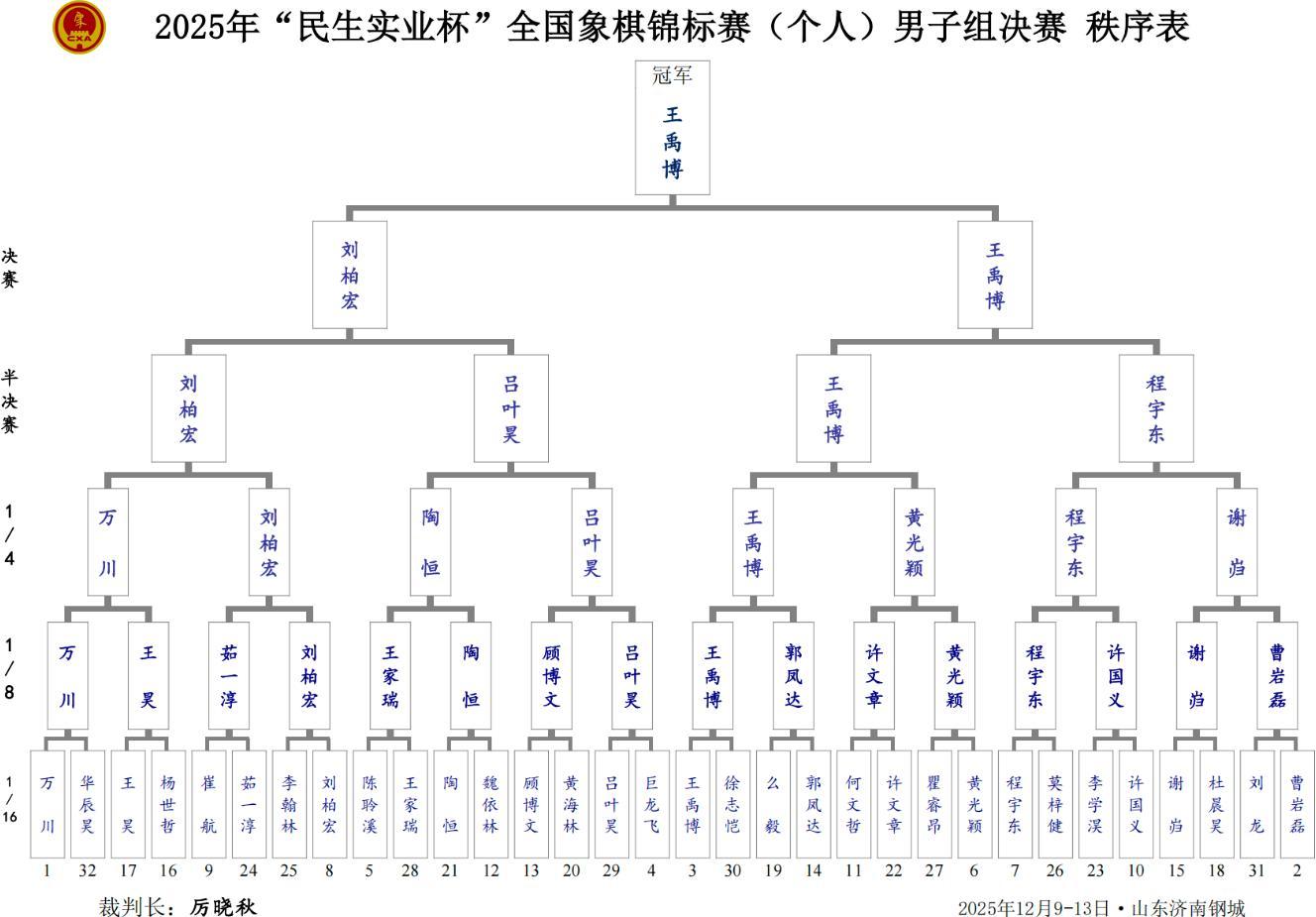 熱烈祝賀2025年個人賽圓滿成功,恭賀王禹博勇奪總冠軍,加冕我國第二十二位棋王,達成個人棋戰里程碑式巨大榮光,賀喜唐丹神取十冠王,超級丹創造史詩偉業,開拓巾幗神光,比肩胡榮華,唯二的兩位數全國冠軍獲得者,恭祝棋史第一金牌教練,御林軍主帥張強特大弟子包攬年度男女冠軍,祝福優秀獲獎棋手,爲賽會和棋手鼓掌,點贊,喝彩。