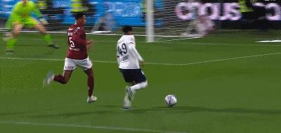 第42分鐘,扳回一城,德曼蓋外圍暴力抽射破門,梅斯1-2巴黎