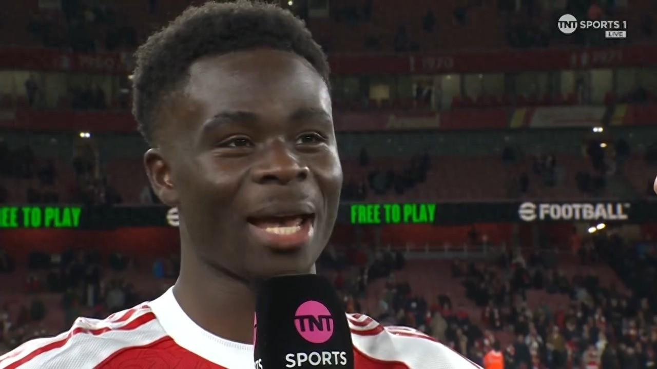 在英超第16輪主場2-1擊敗狼隊之後,阿森納前鋒薩卡接受了來自TNT體育的採訪。