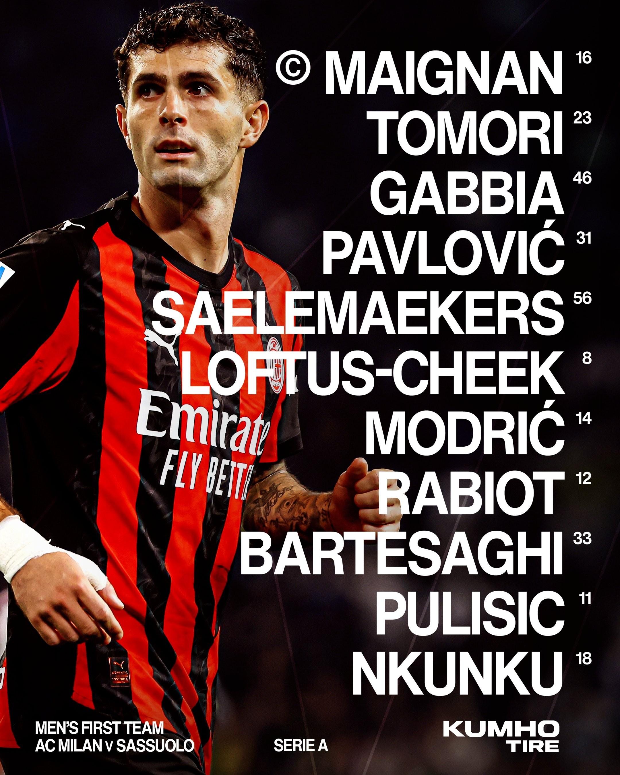 米蘭首發:16-邁尼昂、23-託莫里、46-加比亞、31-帕夫洛維奇、33-巴爾泰薩吉、8-洛夫圖斯-奇克、14-莫德里奇、12-拉比奧、56-薩勒馬克爾斯、11-普利西奇、18-恩昆庫