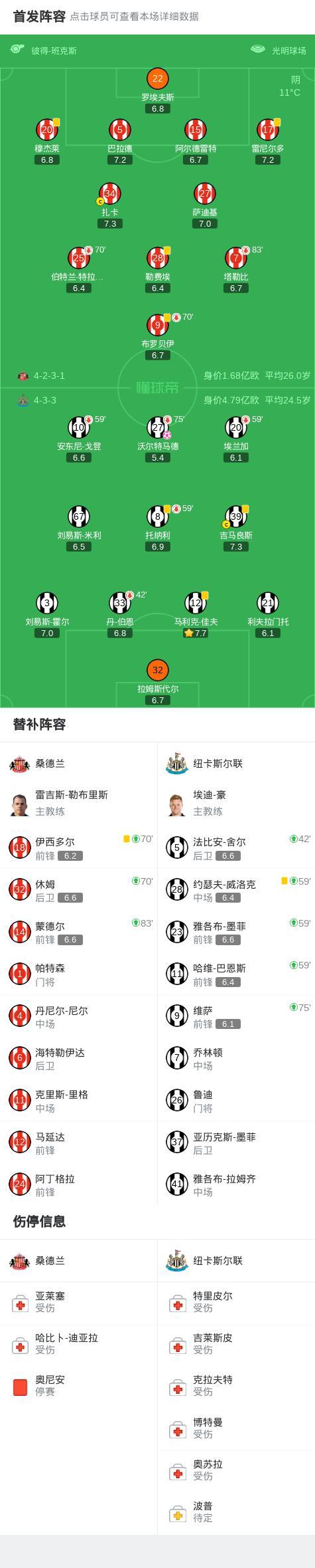 第46分鐘,沃爾特馬德頭球不慎送烏龍,桑德蘭1-0紐卡