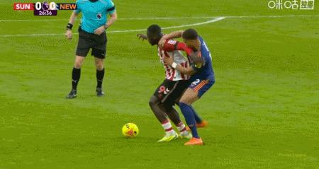 第34分鐘,穆傑萊剷球時膝蓋頂到丹-伯恩胸口,裁判出示黃牌對其警告