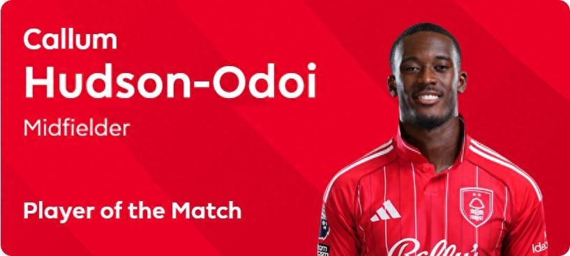 在週日晚進行的英超第16輪比賽中,諾丁漢森林主場3-0擊敗熱刺,賽後,奧多伊被英超官方評爲本場比賽全場最佳球員。