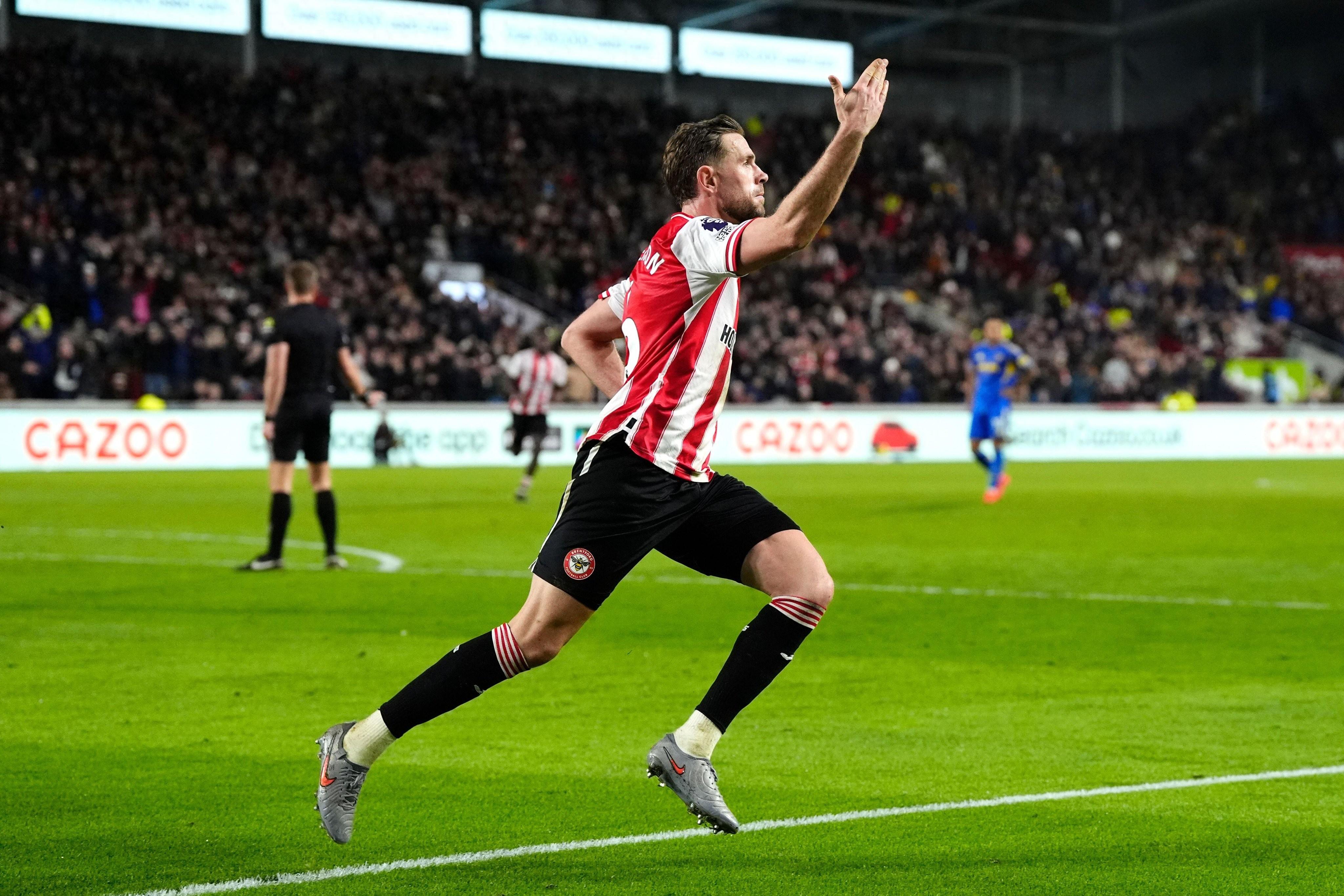 英超第16輪主場迎戰利茲聯的比賽中,亨德森的進球爲布倫特福德首開記錄。