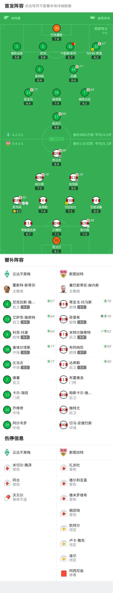 斯圖加特4-0大勝雲達不萊梅,菲裏希建功,昂達夫破門