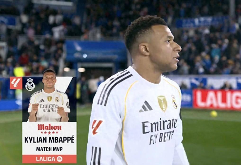 西甲第16輪,皇家馬德里客場2-1擊敗阿拉維斯,此役爲皇馬首開記錄的姆巴佩當選西甲官方全場最佳球員。