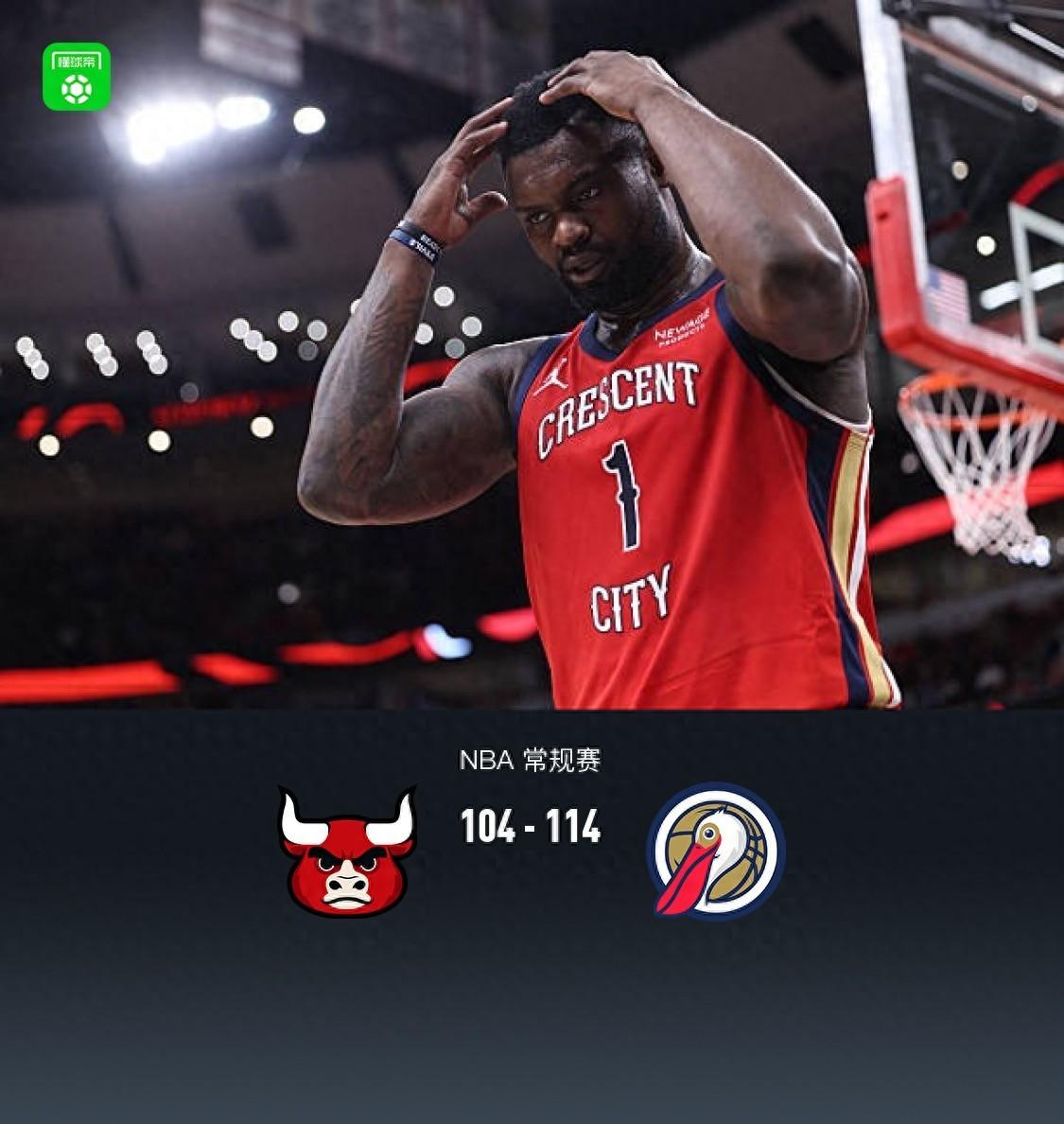 鵜鶘114-104戰勝公牛,錫安復出得18+6,墨菲20+10