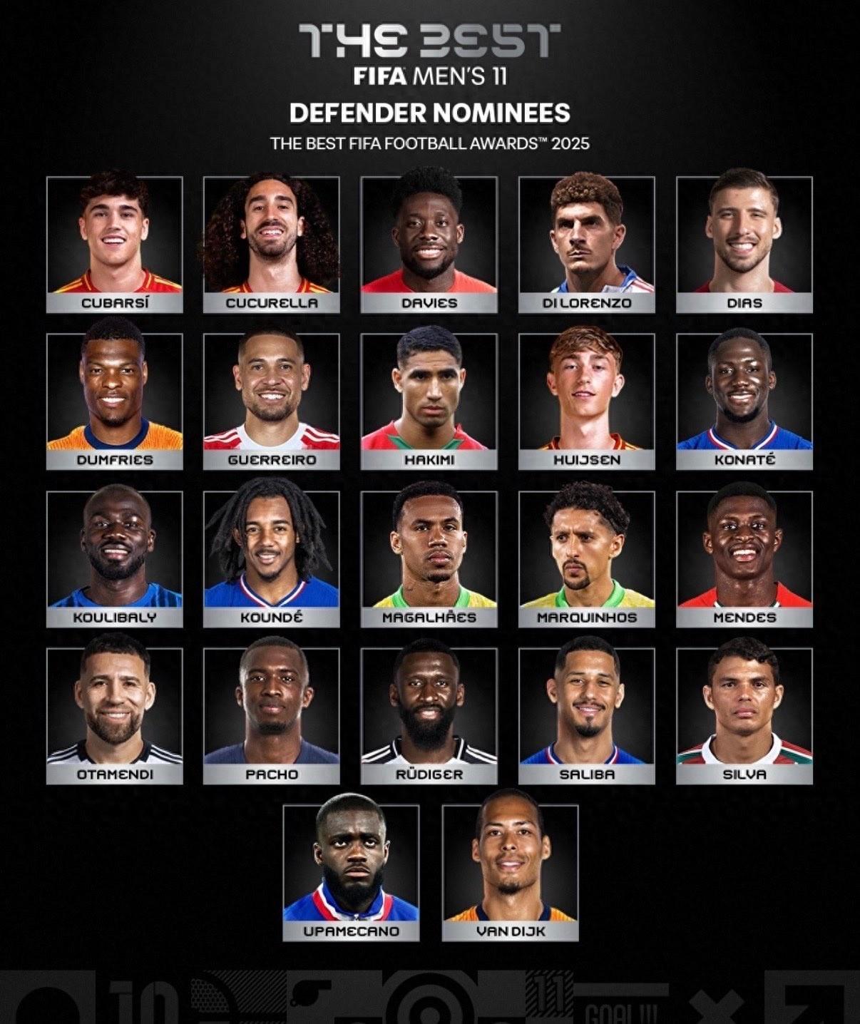 北京時間12月15日,FIFA公佈了年度最佳11人陣容的後衛候選者,範戴克、於帕梅卡諾、薩利巴、呂迪格、阿什拉夫、孔德、魯本-迪亞斯、庫庫雷利亞、鄧弗里斯在列。