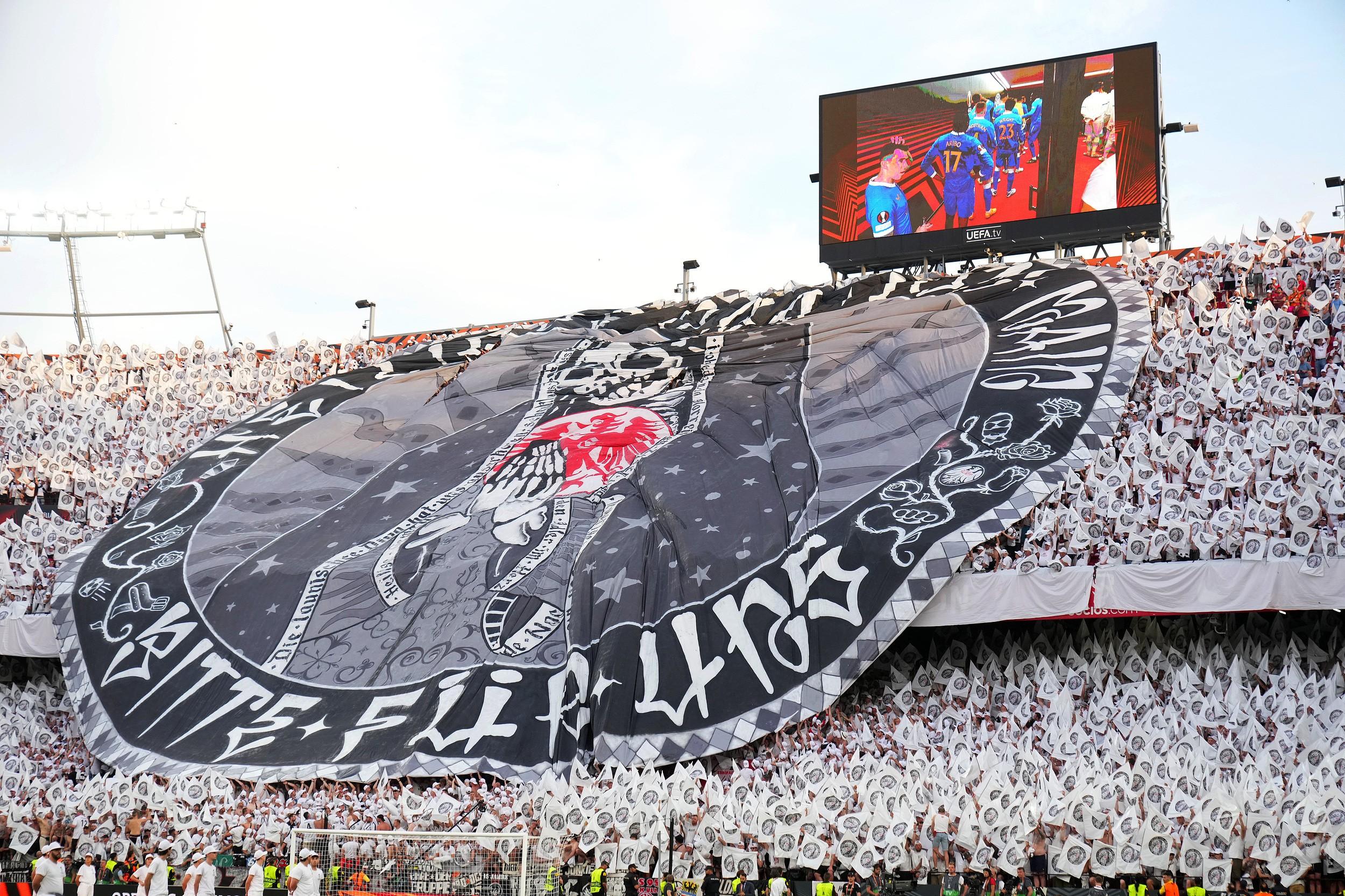 而在塞維利亞舉辦的決賽,遠征的規模達到了令人瞠目的頂點:約12萬球迷湧入城市,將決賽地變爲法蘭克福的第二主場,俱樂部主席彼得-費舍爾那句“我們有19萬遠征球迷都沒辦法擠進這個米奇妙妙屋球場”的調侃,道出了這種忠誠的甜蜜負擔。法蘭克福死忠球迷花費5萬歐元製作了巨型Tifo,全部設備和工具甚至用了7輛卡車才從波蘭被運往塞維利亞,不計成本地爲球隊製造了十足的壓迫感。球隊也沒有辜負球迷們的熱切期待,點球擊敗格拉斯哥流浪者,時隔42年再度歐戰稱王。