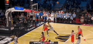 最能體現文班身體控制能力的一球,面對卡魯索的右手切球和左手干擾,文班依然投進了高難度後仰,並在得分後怒斥卡魯索:“你個小碧池!”
