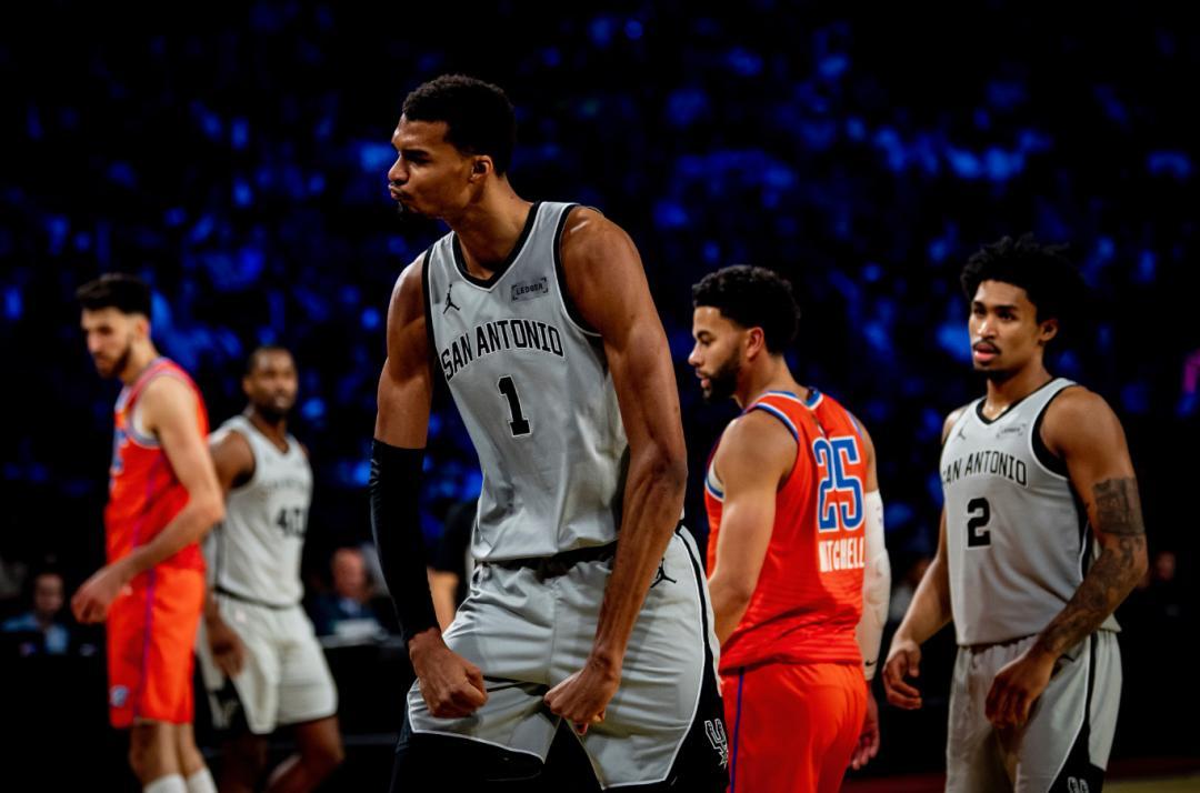 爲了這場NBA杯半決賽,兩隊顯然都有備而來,文班亞馬和哈滕施泰因不約而同地在這一場復出,馬刺還多BAN了索漢,相當於兩隊都是全主力陣容,再沒有任何開脫的藉口。而相比雷霆的常規首發,馬刺卻玩了一招田忌賽馬,文班第一節完全沒出場,全靠之前9勝3負的原班首發和雷霆硬碰硬。