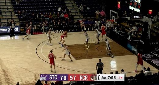 第三節撕裂之城混音賈馮特-庫克拿下7分,斯托克頓國王德文-卡特拿下7分,第三節結束撕裂之城混音72-101落後斯托克頓國王