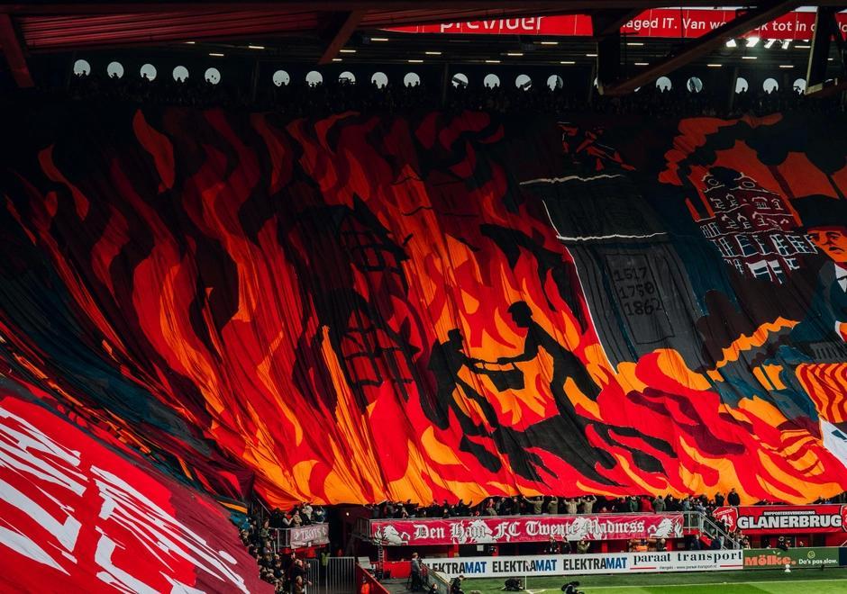 如此宏大的創作並不是爲了特溫特隊本身,也不爲慶祝勝利,它屬於整座城市。2025年12月15日,恩斯赫德迎來了建城700年紀念日,Tifo上繪製的標語向這座歷經了重重苦難的城市致敬:“Uit ’t as herrezen, veerkracht bewezen”(從灰燼中重生,展現出不屈的韌性)。球迷的熱情在看臺上蔓延,而這股熱情背後,是城市數百年的風雨,映射在巨幅Tifo的每一處細節中。