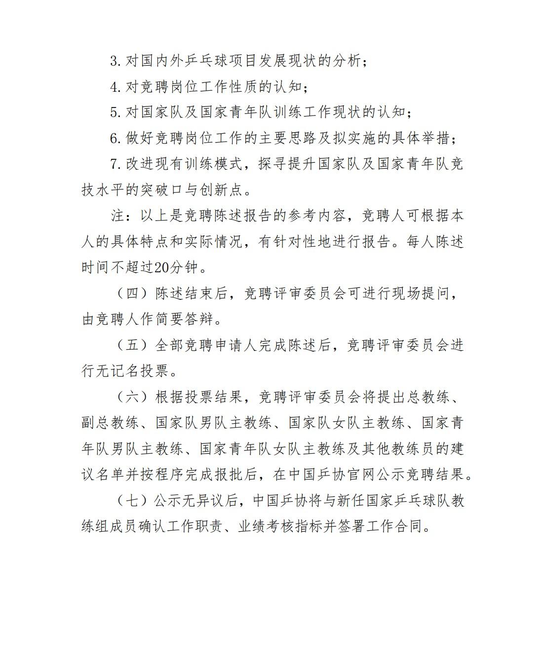 (三)所有獲得競聘資格並參與競聘陳述與答辯的申請人,將被納入國家乒乓球隊教練員後備人才庫。