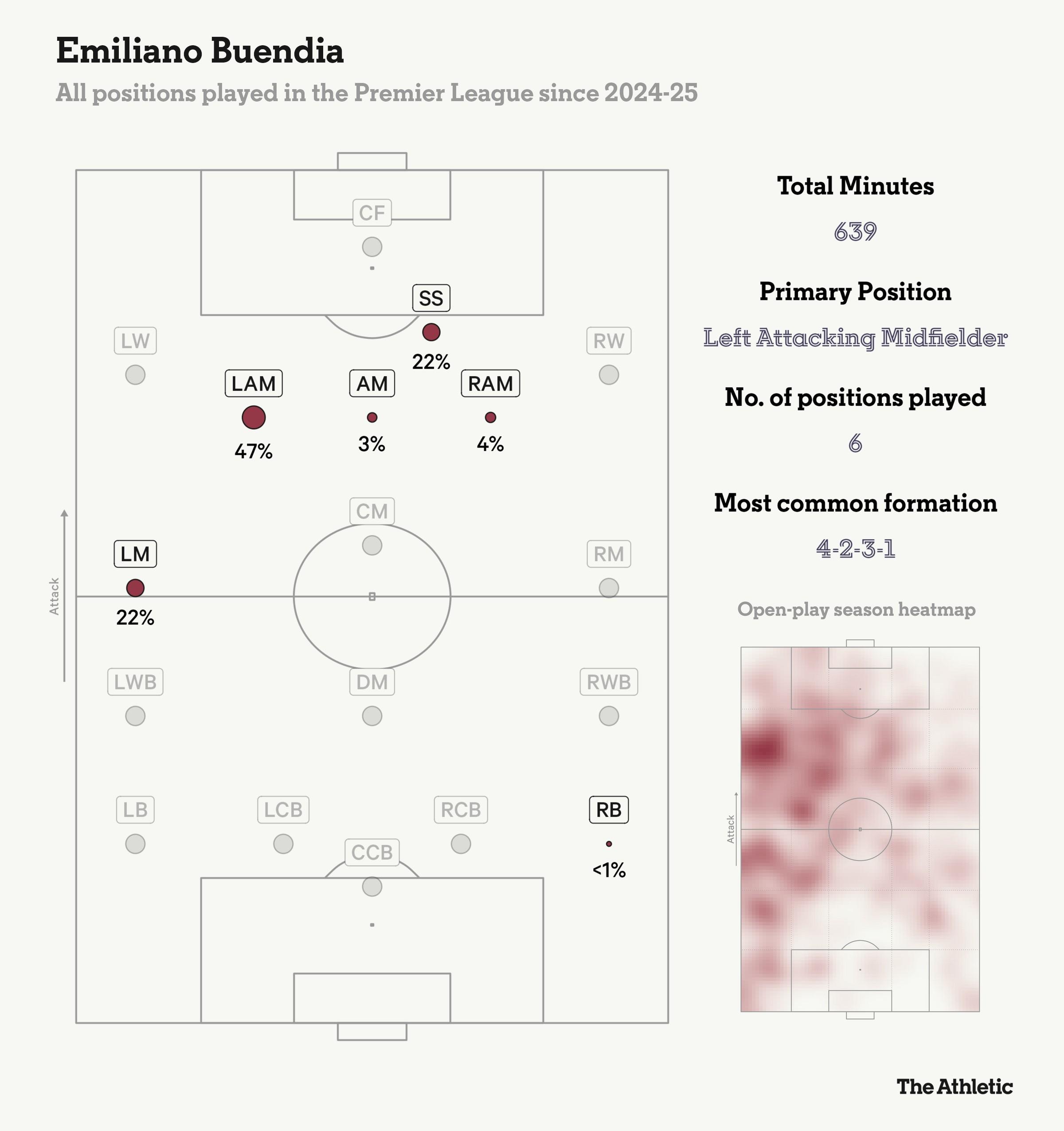近日, The Athletic發表專題文章,分析了維拉的阿根廷攻擊手布恩迪亞本賽季的卓越表現。文章指出,在經歷重傷與租借波折後,布恩迪亞不僅以關鍵進球和助攻實現強勢復甦,更以其敏銳的跑位、多變的角色適應性以及對比賽態勢的深刻理解,完美詮釋了主帥埃梅里對10號位球員的戰術要求,成爲維拉近期戰績飆升不可或缺的核心驅動力,以下爲專題文章。