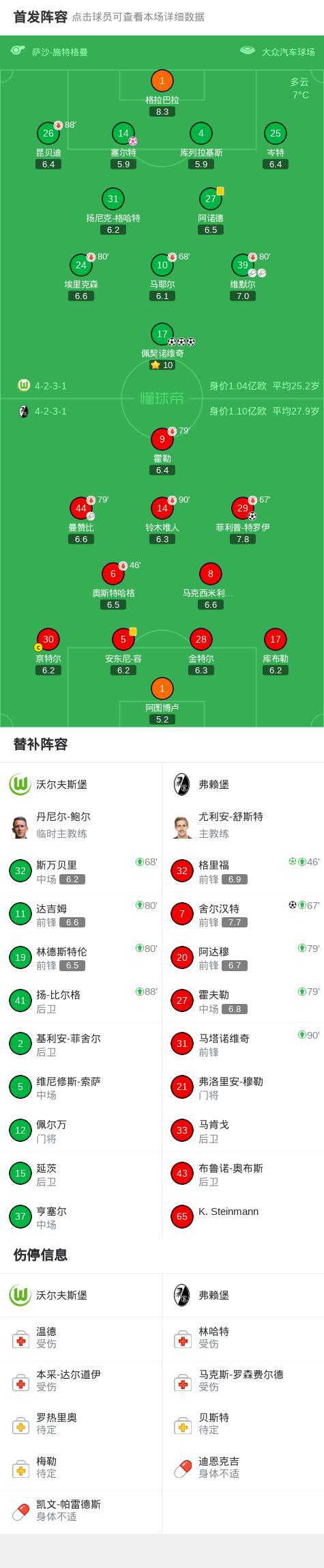 第69分鐘,沃爾夫斯堡球員維默爾助攻佩契諾維奇打入一球。
