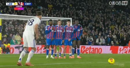 第90+11分鐘,施塔赫任意球直接破門,利茲聯4-1水晶宮