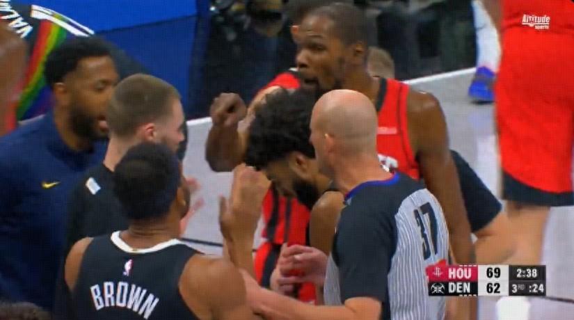 在比賽第三節末端,杜蘭特與其籃網時期隊友布魯斯-布朗互噴垃圾話險些釀成衝突,兩人在各自隊友與裁判的勸說下沒有將事態升級。