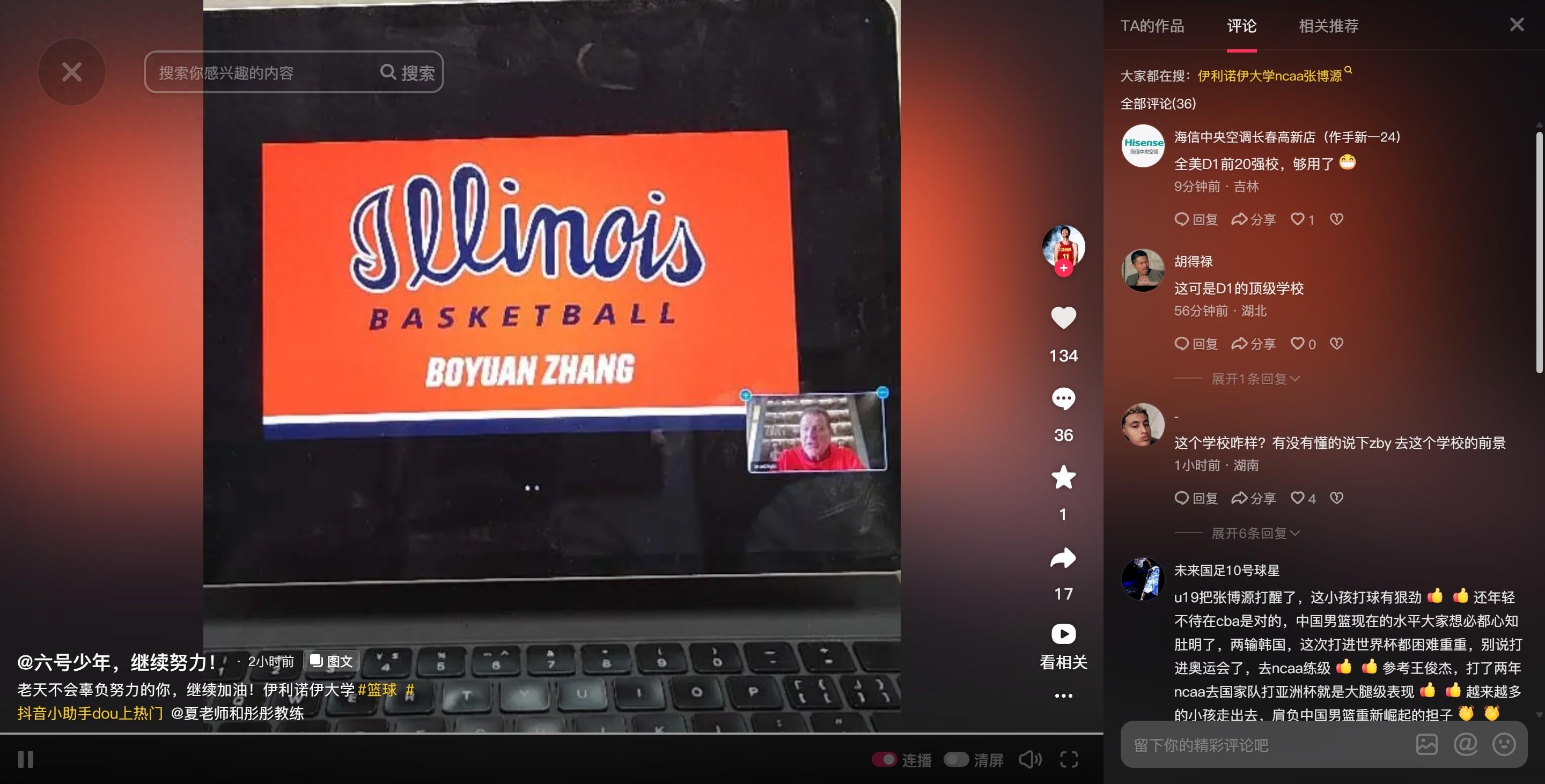 北京時間今日,中國籃球留美小將張博源父親在個人抖音賬號中發佈作品,曬出了兒子收到美國NCAA名校伊利諾伊大學offer的截圖。
