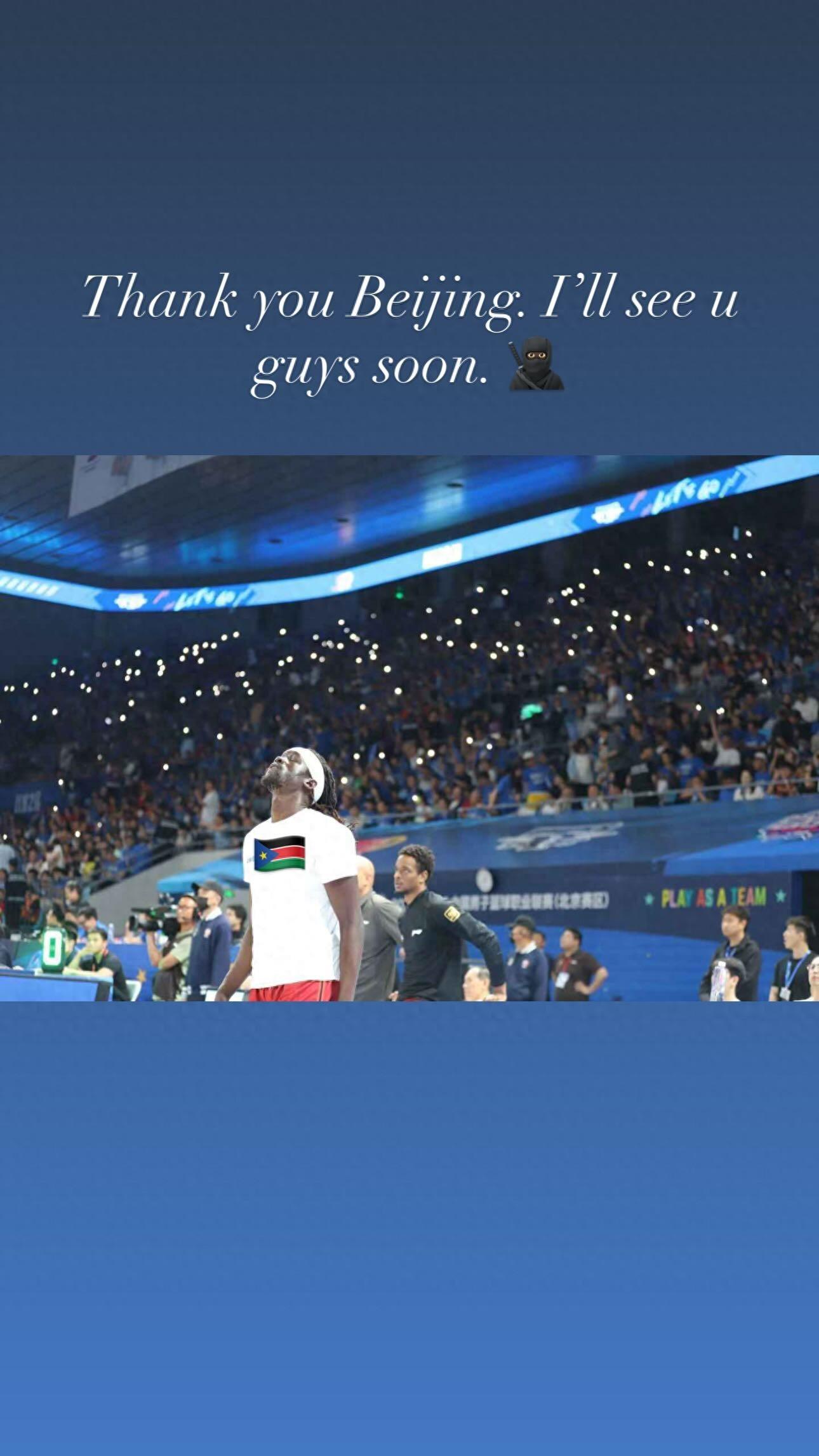 奧莫特更新了一張自己身着北京首鋼訓練服抬頭仰望的圖片,配文:謝謝你,北京,我和你們很快就會再見面的。