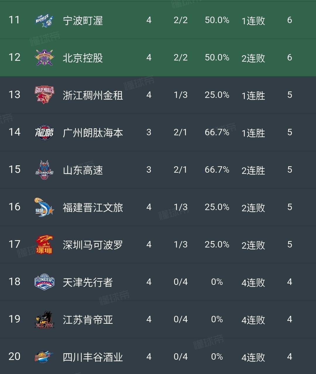 目前北京和廣東4勝0負領跑全聯盟,遼寧和廣廈分列三四名,而天津、江蘇和四川則是一勝難求,0勝4負排在聯盟最後三位。