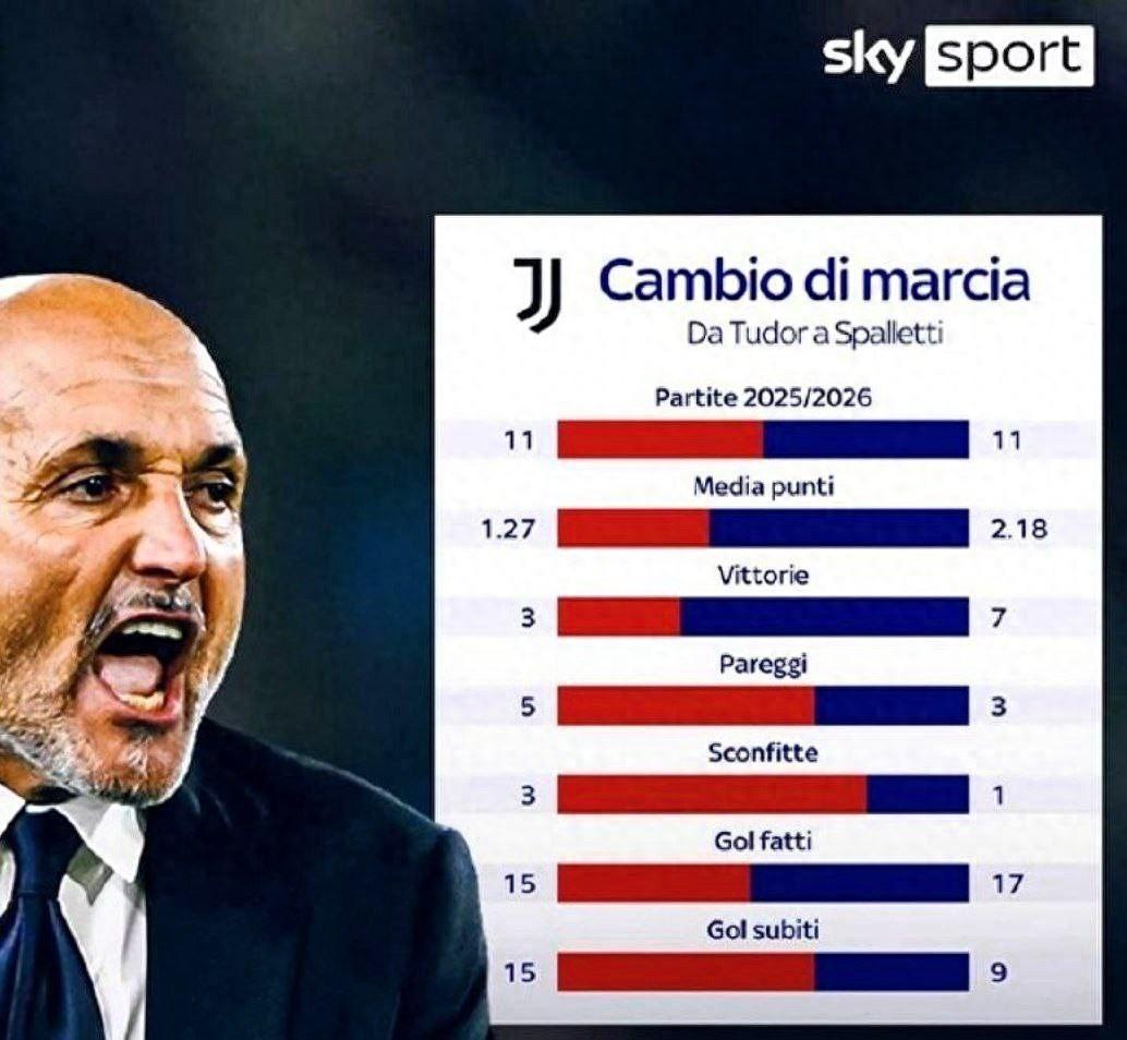 與羅馬的比賽是斯帕萊蒂執教尤文的第11場,意大利天空體育也以此爲節點,與圖多爾本賽季執教的11場比賽進行了成績對比。