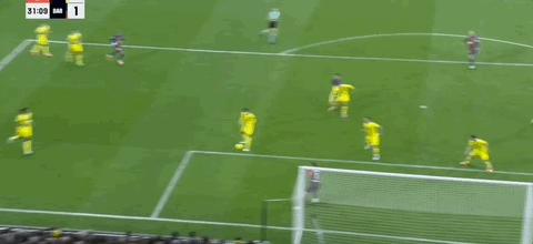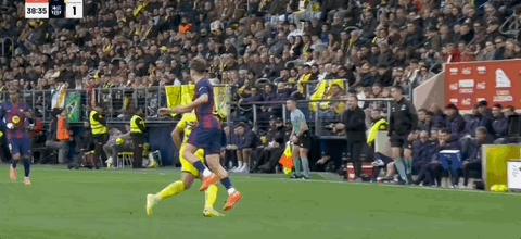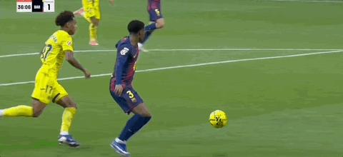 第31分鐘,亞馬爾禁區外嘗試一腳遠射,球高出橫樑