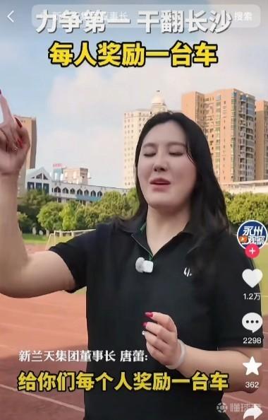 評論區有網友表示——“永州隊奪冠後,送的是雅迪電動車。”實際上,早在新蘭天集團董事長唐蕾說出“奪冠送車”後沒多久,她就針對網友的“調侃”給出了回應。